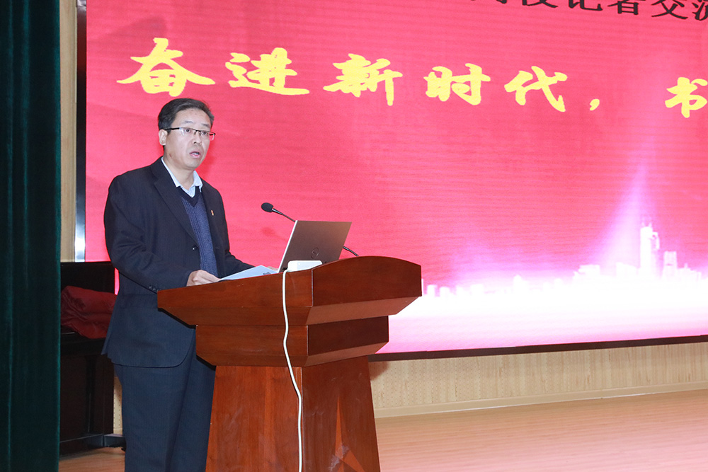 宣传统战处负责同志致辞,代表76net必赢官网宣传统战处和广大师生对驻潍大学生记者朋友的光临表示热烈的欢迎,介绍了几年来必赢取得的显著办学成就和大学生记者团在院报、官微方面采写报道取得的成绩。希望驻潍高校大学生记者坚持党性原则,强化政治意识,各高校加强交流,各抒己见,汇智聚力,协同发展,接好“天气”,接好“地气”,写出有高度、深度、精度、温度的新闻报道,更加自觉唱好高校育人好声音。