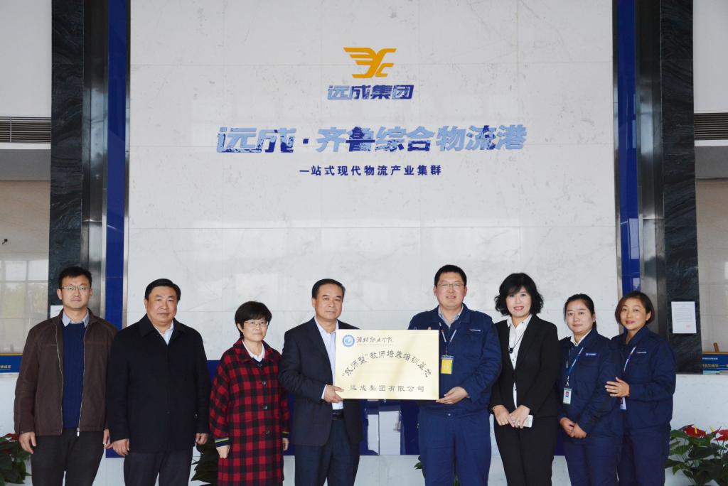 洽谈结束后,郭晓辉一行参观了远成齐鲁综合物流港的运营中心,并举行了“双师型”教师培养培训基地授牌仪式。(刘纪录供稿)