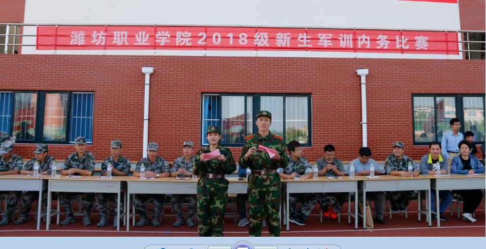 学院2018级新生军训内务比赛分别于9月25日、26日下午在奎文校区和滨海校区体育场举行。军训团各营营长及教官代表、二级学院团总支书记、公寓中心副主任担任评委。各二级学院辅导员、班主任及两校区全体新生观看了比赛。