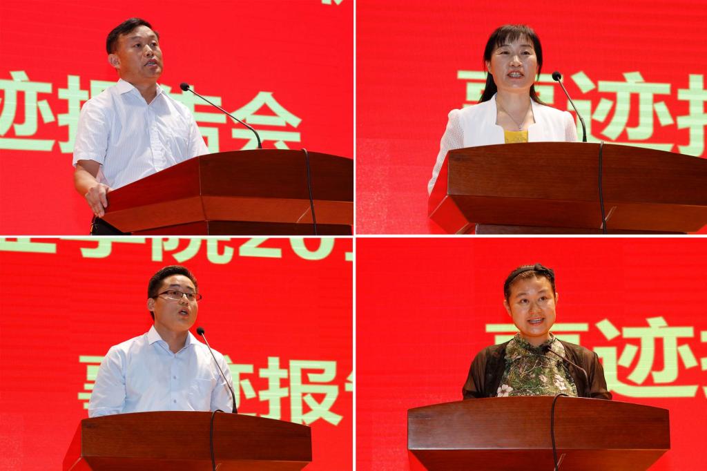 报告会上,丁世民教授等九位优秀教师代表讲述了他们在平凡的工作岗位上做出的不平凡事迹,他们中有国家级人才称号教师,有全国信息化教学比赛一等奖获得者,有全国职业院校技能大赛一等奖指导教师,有信息化混合式课程改革创新的践行者,有在工作中悉心指导青年教师成长默默无闻的奉献者。他们热爱教育,心系学生,忘我工作,辛勤耕耘,投身教改,融入大赛的精神,他们在教学、科研、社会服务、学生管理以及各种赛事等方面取得了突出成绩。