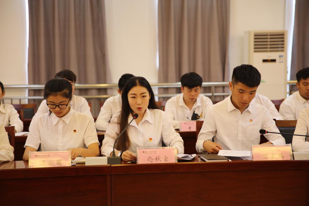本次座谈会的主题是学习贯彻习近平总书记“5.2”“5.4”重要讲话,坚定理想信念,立志成长成才,争做德智体美全面发展的社会主义建设者和接班人。座谈会上,大家集体全文学习了习近平总书记在北京大学师生座谈会上的讲话,书面学习了习近平总书记在纪念马克思诞辰200周年大会上的讲话。思想政治理论课教学部周娉老师以“大学生如何‘立鸿鹄志,做奋斗者’”为题,讲了一节精彩的微课。史海亮老师结合自己精读马克思主义理论原著的体会作了精彩发言。优秀学生干部代表伦秋宝、万家鹏、吴欣萌、赵玲四位同学结合学习贯彻习近平总书记“5.2”“5.4”重要讲话谈了学习体会。