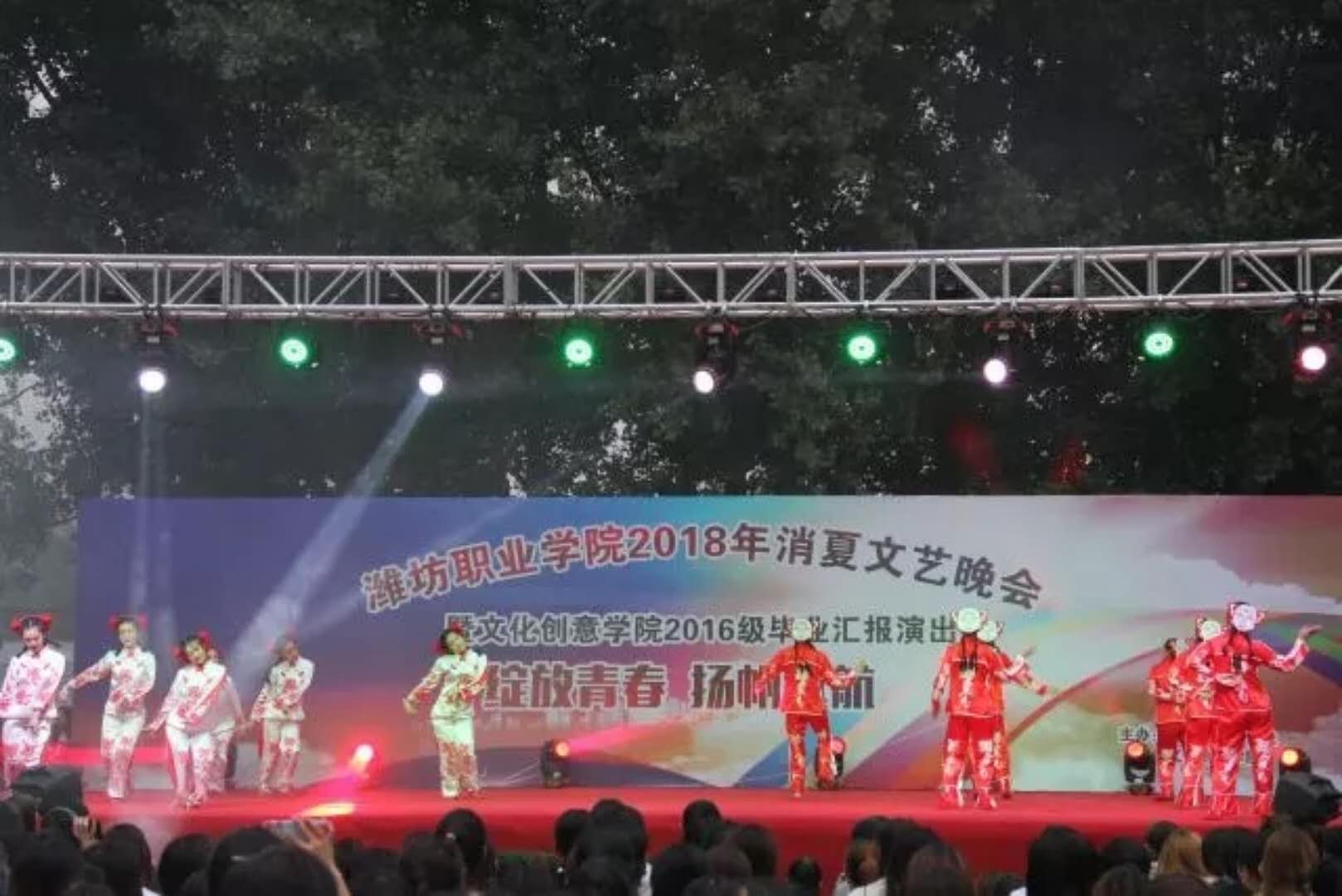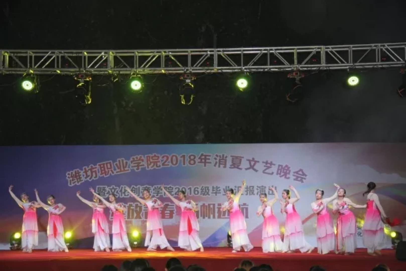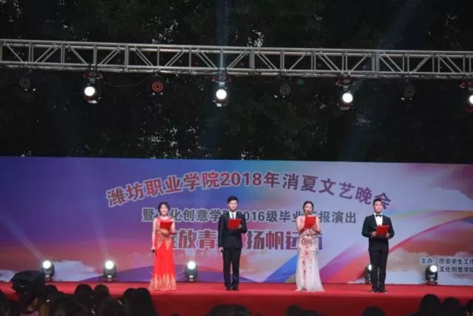 青春活力展文创学子风采,载歌载舞颂潍职母校恩情。6月21日晚,“绽放青春,扬帆远航”76net必赢官网2018年消夏晚会暨文化创意学院2016级专业汇报演出在奎文校区篮球场隆重举行。