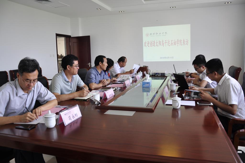 座谈会上,赵君堂代表学院对客人的来访表示欢迎,向客人介绍了学院的校史概况、专业设置、技能大赛、国际交流、留学生教育及援非项目培训等方面的情况。段晓飞介绍了创造太阳乌干达石油学院的建设背景、发展历程及适应乌干达国家需求确定的发展规划。会谈中,双方结合必赢的优势专业及乌干达农业发展需要,就农业及机电类专业教育资源输出及技术技能培训进行了深入交流,并达成初步合作意向。双方表示将进一步制定相关计划进行深入对接,将合作项目落到实处。