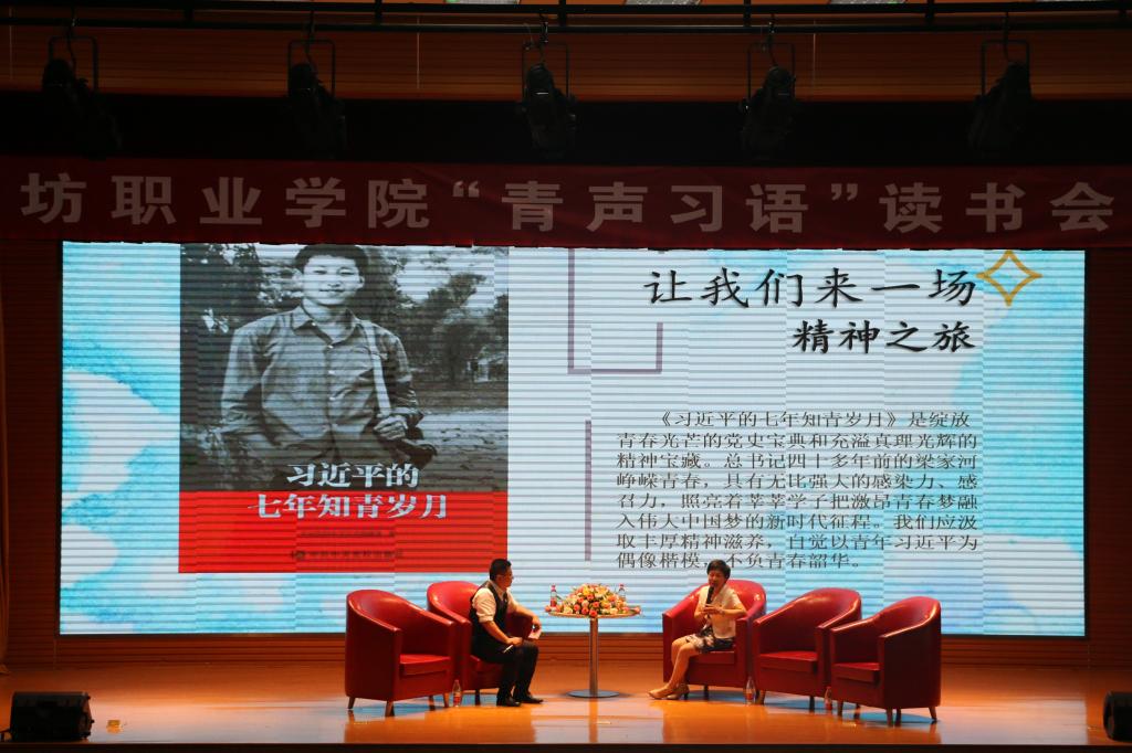 6月6日下午,由学院团委学生处、图书馆主办,经营管理学院承办的首期《青声习语》读书会客厅活动在学院图书馆报告厅举行。学院团委书记学生工作处处长刘志艳、图书馆馆长翟立红、经营管理学院院长张建奎、青年读书社指导老师史海亮作为访谈嘉宾和学院第四期“青马班”全体学员、各二级学院学生代表共450人参加了此次活动。