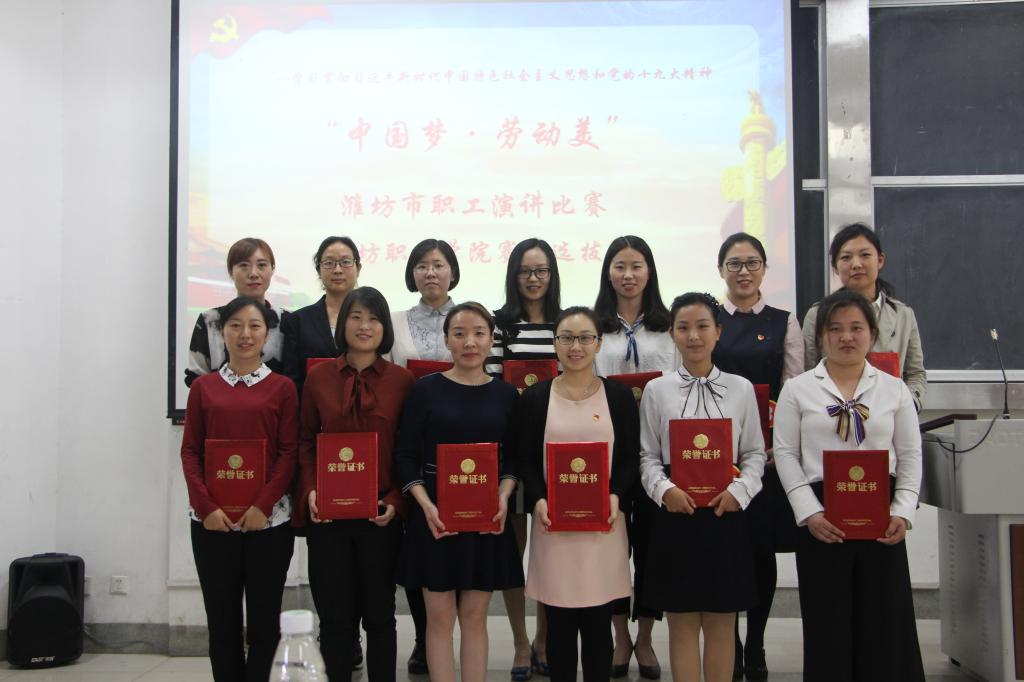 5月10日下午,学院在奎文校区举行“中国梦·劳动美——学习贯彻习近平新时代中国特色社会主义思想和党的十九大精神”全市职工演讲比赛76net必赢官网赛区选拔赛。