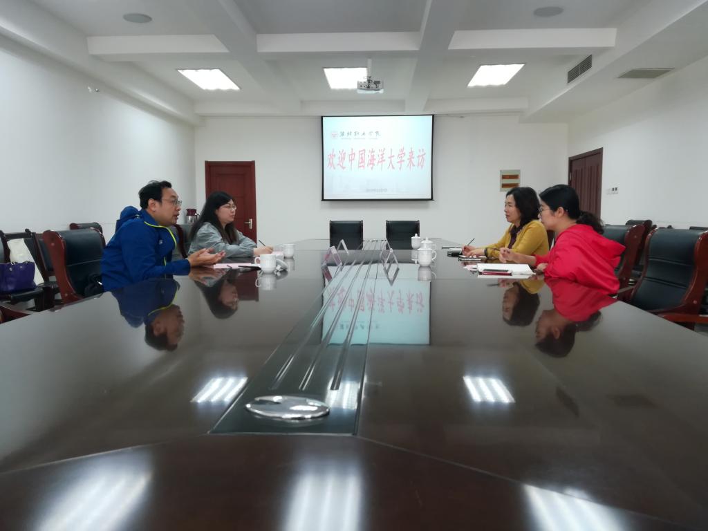 5月9日,中国海洋大学国际教育学院副院长李剑一行2人来必赢考察交流,国际交流与合作处的负责同志在奎文校区接待了客人,并参加座谈交流。