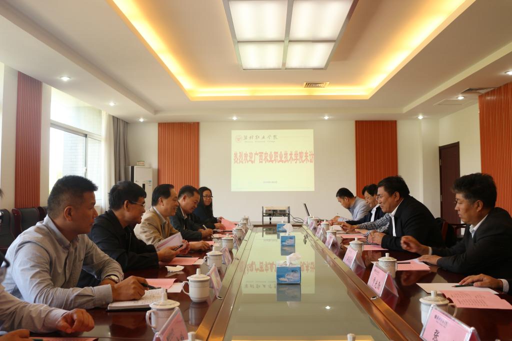 5月8日,广西农业职业技术学院副院长邓庆文一行9人来必赢考察交流。院长王家爱会见客人,后勤服务处、资产管理处、基建处等部门负责同志参加座谈交流。