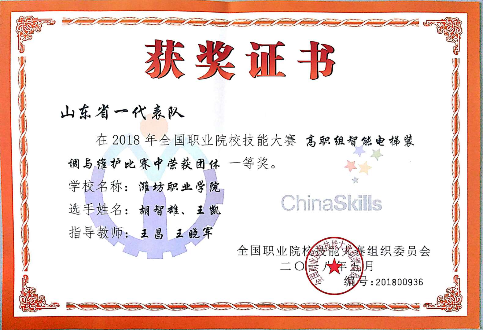5月6日至8日,2018年全国职业院校技能大赛高职组“智能电梯装调与维护”赛项在天津轻工职业技术学院举行。来自全国的81支代表队参赛。必赢机电工程学院选派学生王凯、胡智雄,指导教师程义民、王昌、王晓军组成的山东一队参加了比赛,获得团体一等奖第一名,必赢连续四届均获得该赛项国赛一等奖。