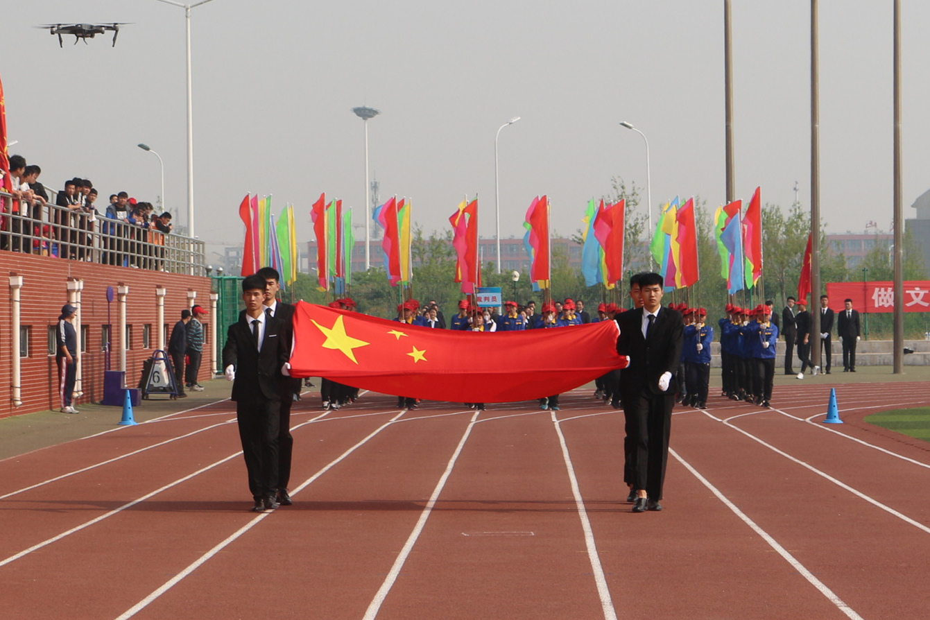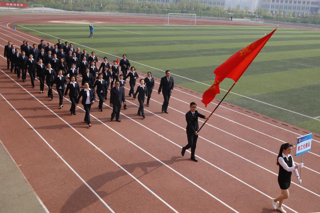 赵君堂致开幕词。他代表学院党委、行政向运动会的开幕表示热烈祝贺。他说,组织和举办好这次运动会,是全面贯彻落实习近平总书记关于青少年健康成长和加强学校体育工作重要论述的具体举措,也是对学院群众性体育工作、实施素质教育和师生精神风貌的一次全面检阅,更是全力推进优质高职院校和文明校园建设的具体措施。近年来,学院大力贯彻党的教育方针,积极开展文明校园创建系列健身体育活动,广泛组织丰富多彩的各类竞赛,包括体育工作在内的学院各方面工作取得了显著成绩。要通过组织办好运动会,牢固树立“健康第一”的理念,大力弘扬“更高,更快,更强”的体育精神,全面开展“师生健康、中国健康”主题健康教育活动,深入开展“阳光体育运动”,倡导广大青年“走下网络,走出宿舍,走向操场”,让“运动有我、活力潍职”成为师生普遍认同并积极践行的校园文化,让“拼搏奉献、担当有为”的潍职精神在实现体育梦想的进程中得到传承和发扬,全面推进学院各项事业创新蓬勃发展。