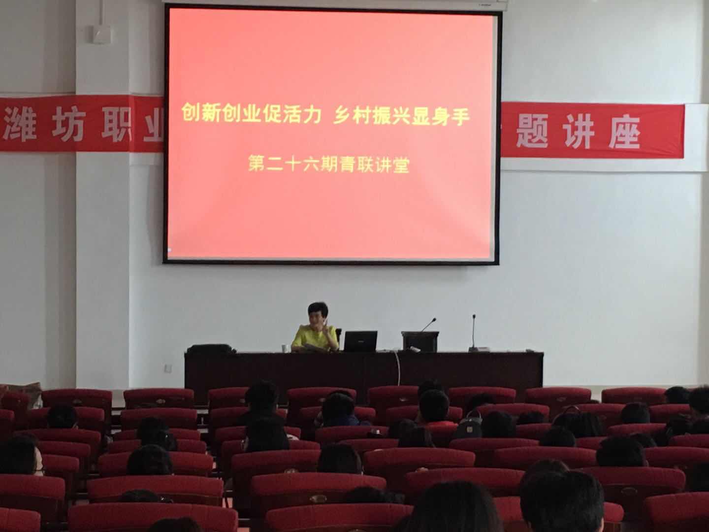 4月24日下午,“小乐西瓜”创始人宋会灵女士、潍坊市大中专毕业生就业指导中心黄训涛科长及相关人员,到必赢滨海校区清泽楼413室进行了农产品领域创业知识讲座,创业教育学院相关人员、农林科技学院及食品药品学院170余名学生听取了报告。