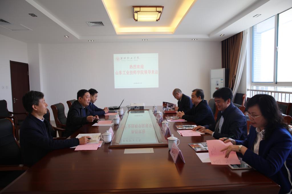 4月11日,山东工业技师学院党委副书记孙义宝一行5人来必赢考察交流。党委副书记宋桂言会见了客人。党委委员、办公室主任谭明,组织人事处负责同志参加座谈。