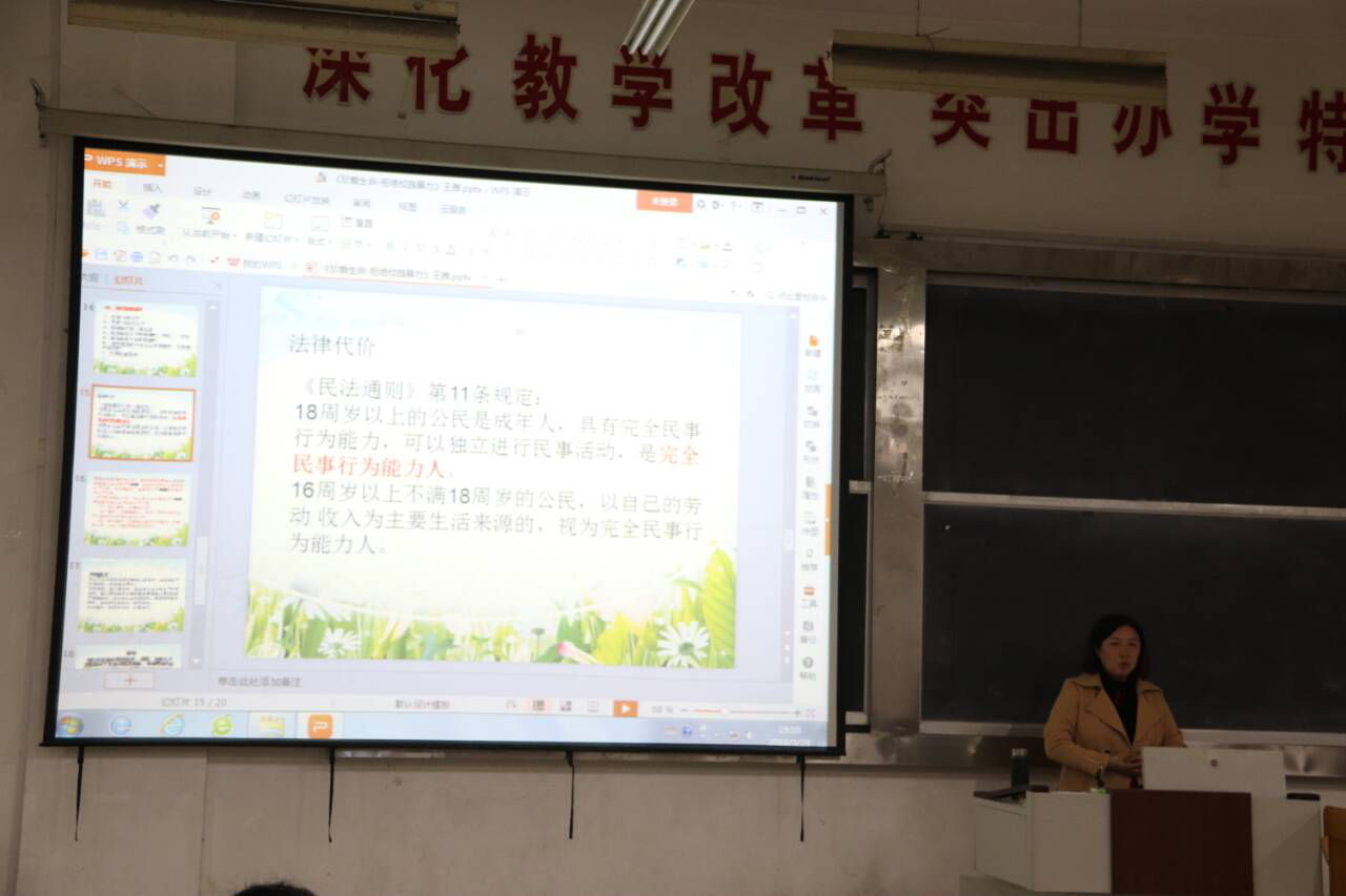王茜老师结合一系列具体案例,分析了校园欺凌的成因、常见形式、危害及需要为此付出的代价,一个个鲜明的案例,一张张真实的图片引起同学们的警醒和思考。最后,王茜老师给同学们普及了相关法律知识,并向大家传授了拒绝校园欺凌、免受伤害的方法。