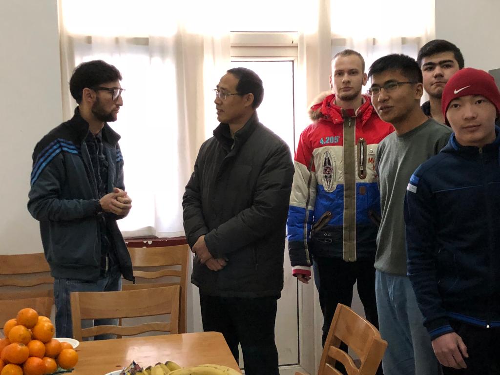 金鸡辞旧岁,瑞犬迎新春。2月15日农历除夕,副院长赵君堂在国际交流与合作处负责同志及老师的陪同下,到学院留学生公寓看望了留在学院过春节的70余名留学生,并为他们送上学院的关怀和新春的祝福。