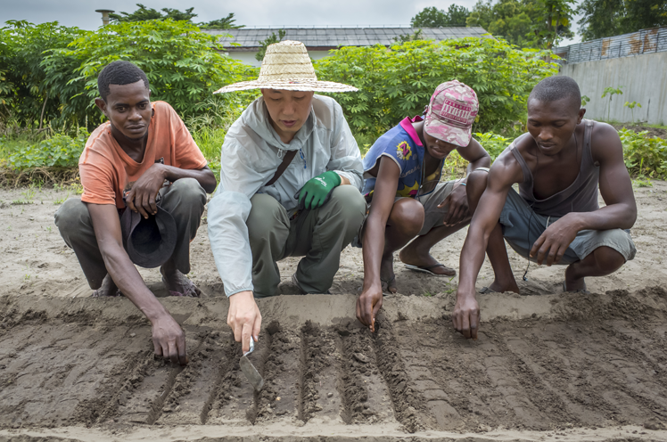 援助刚果(金)第六期旱作物示范项目是商务部组织的由山东对外经济技术合作集团有限公司承担的一项援非任务,必赢两位教师的主要任务是协助项目组进行“土壤改良”、“配方施肥”、“病虫害防治”等相关工作,同时对作为项目组生活保障的蔬菜基地进行扩建提升,将国内带去的蔬菜品种进行繁育实验。经过一段时间的调整,王效华、李凯两位教师已经适应当地的生活环境,并与项目组其他专家一起开展了一系列的科研和培训工作。(王效华、李凯、姜伟强)