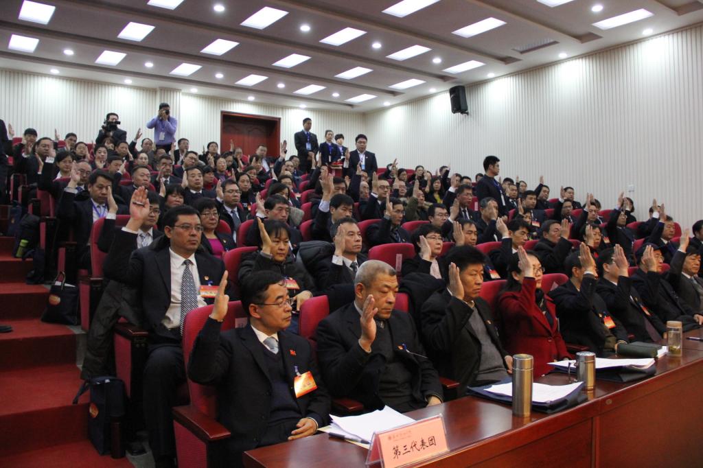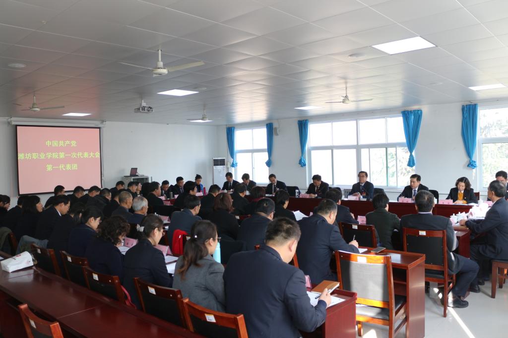 1月11日,奎文校区创业中心报告厅气氛热烈,悬挂在主席台帷幕中央的党徽熠熠闪光,紧紧簇拥在党徽两侧的十面红旗格外鲜艳,备受广大师生瞩目的中国共产党76net必赢官网第一次代表大会隆重开幕。张洪全同志代表中共76net必赢官网委员会作工作报告。王家爱同志主持会议。大会主席团全体成员在主席台就座。149名党员代表参加大会。部分学院老领导、党外副处级干部、现代服务业学院负责人代表列席会议。