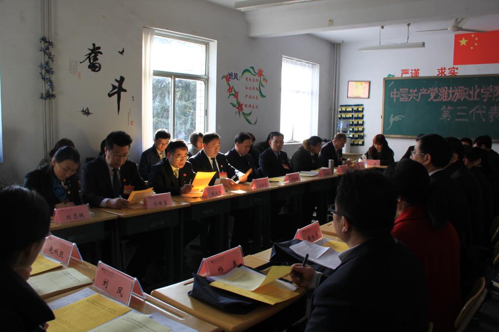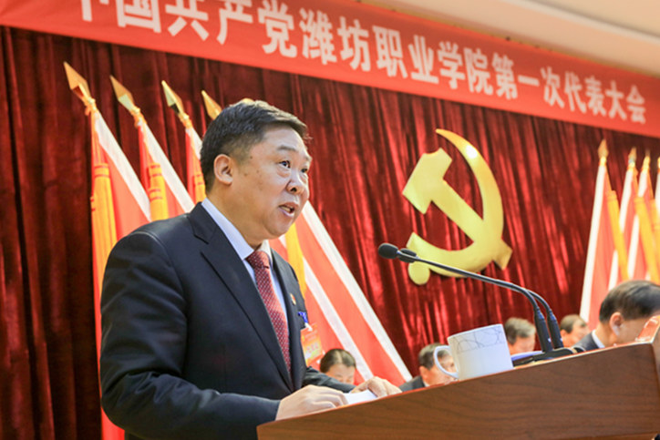 张洪全向大会作题为《牢记使命,团结实干,为加快建设优质高职院校而努力奋斗》的工作报告。他指出,2001年学院成立以来,在上级党委、政府的正确领导下,学院党政团结带领广大党员和师生员工,开拓进取、奋发有为,坚持专业建设与区域产业相融合、人才培养过程与生产实践相融合、学校文化与企业文化相融合,学院发展对接区域经济社会发展,形成了“三融合一对接”的办学特色,为区域经济社会发展提供了有力的人才支撑和智力保障,人才培养质量和综合办学水平居于全省同类院校前列。学院现为山东省高等教育特色名校,成功立项并全面推进山东省优质高职院校建设,荣获“潍坊市级文明校园”荣誉称号,荣登全国高等职业院校“双50强”榜单,开启了学院事业发展新征程。