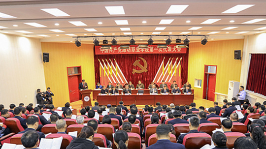 大会的主题是:高举中国特色社会主义伟大旗帜,深入学习贯彻落实党的十九大精神,以习近平新时代中国特色社会主义思想为指引,牢记立德树人神圣使命,全面加强党的建设,落实培养高素质技术技能人才、服务经济社会高质量发展的任务目标,大力推进优质高职院校和文明校园创建,改革创新体制机制,持续深化内涵发展,不断提升育人质量和办学水平,把学院建设成为“潍坊龙头、全省领先、全国一流”的优质高职院校,为打造教育名城、建设“四个城市”作出更大贡献。