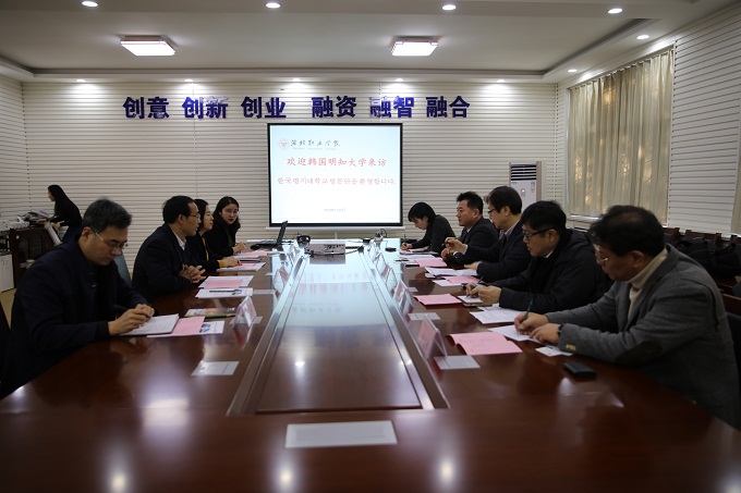1月9日,韩国明知大学国际交流院院长朱星一、研究生院院长朴天悟等一行5人来必赢访问,副院长赵君堂在奎文校区会见了客人,国际交流与合作处相关负责同志参加了座谈交流。
