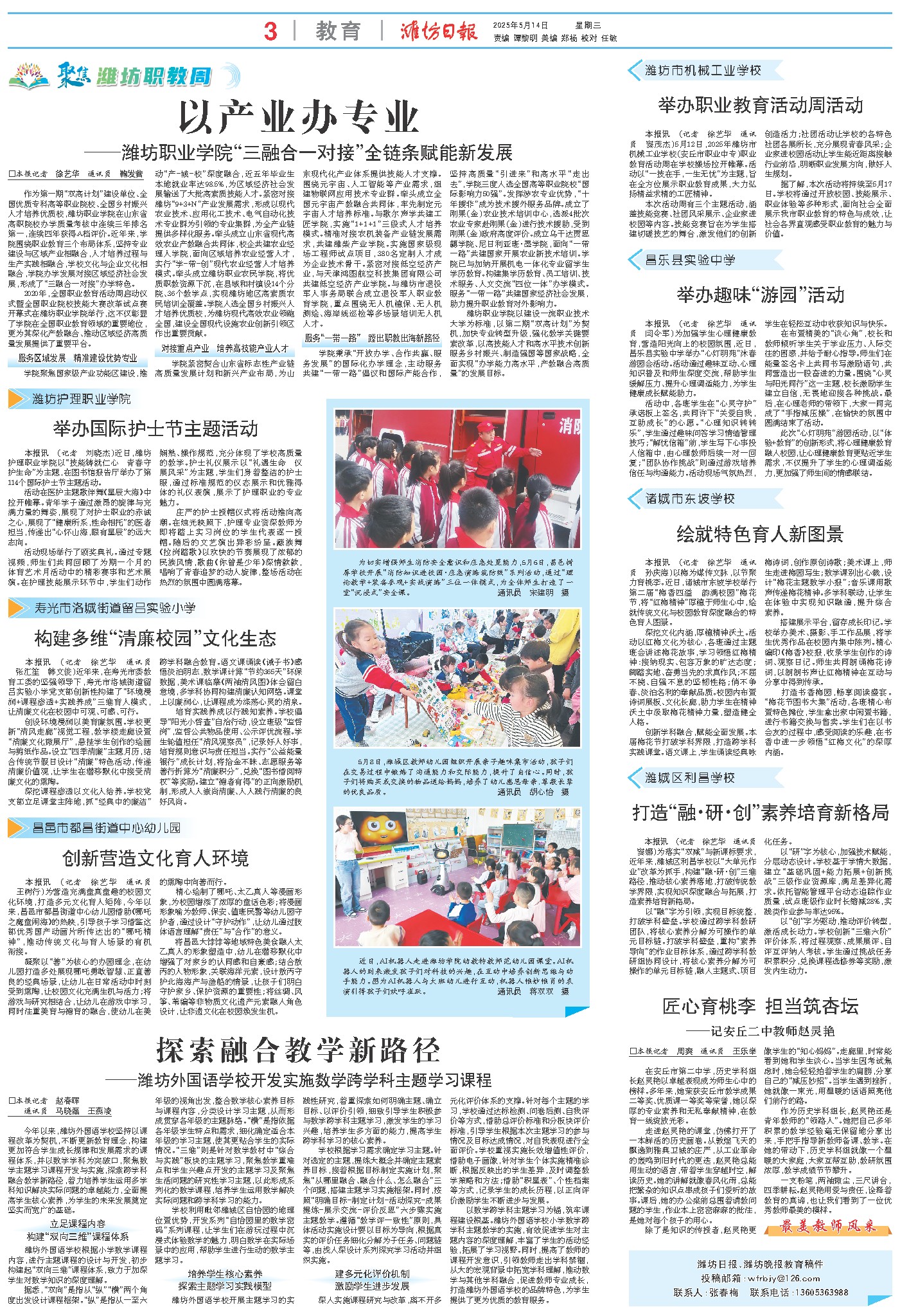 学院紧密契合山东省标志性产业链高质量发展计划和新兴产业布局,为山东现代化产业体系提供技能人才支撑。围绕元宇宙、人工智能等产业需求,组建物联网应用技术专业群。牵头成立全国元宇宙产教融合共同体,率先制定元宇宙人才培养标准。与歌尔声学共建工匠学院,实施“1+1+1”三段式人才培养模式。精准对接农机装备产业链发展需求,共建潍柴产业学院。实施国家级现场工程师试点项目,380名定制人才成为企业技术骨干。紧密对接低空经济产业,与天津鸿图航空科技集团有限公司共建低空经济产业学院。与潍坊市退役军人事务局联合成立退役军人职业教育学院,重点围绕无人机植保、无人机测绘、海岸线巡检等多场景培训无人机人才。