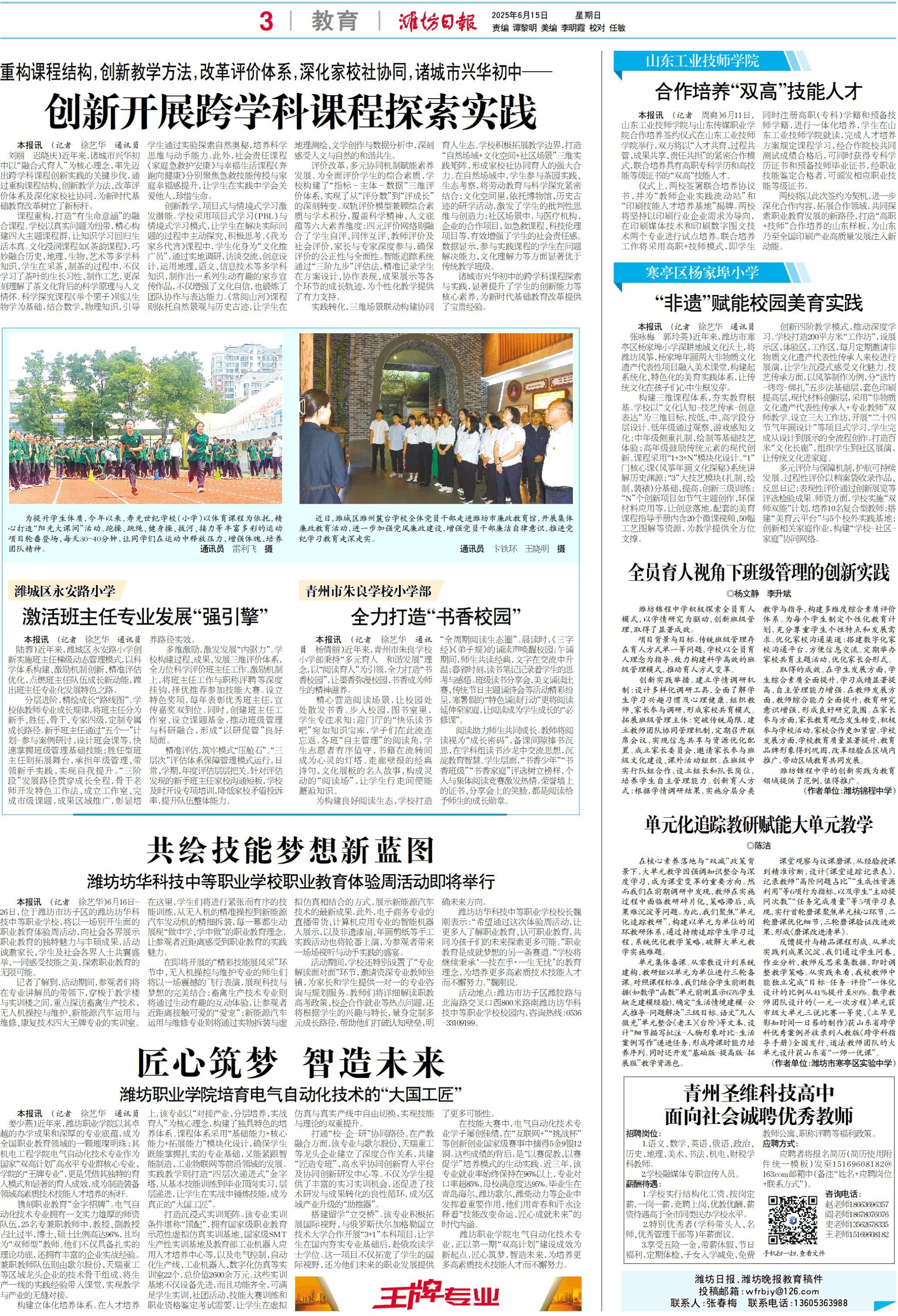 [潍坊日报] 匠心筑梦 智造未来 76net必赢官网培育电气自动化技术的“大国工匠”