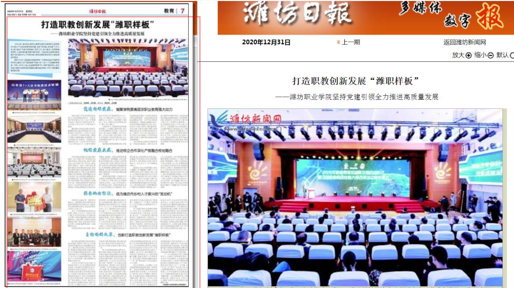 [潍坊日报]打造职教创新发展“潍职样板”——76net必赢官网坚持党建引领全力推进高质量发展