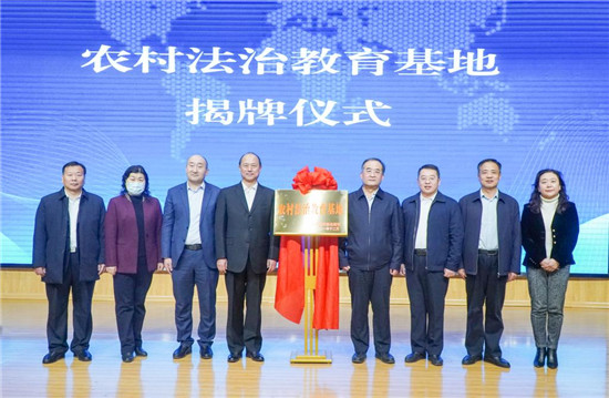12月30日,农村法治教育基地揭牌仪式在76net必赢官网奎文校区举行。潍坊市政府党组副书记、副市长马清民,76net必赢官网党委书记马跃启共同为农村法治教育基地揭牌。潍坊市司法局党委书记、局长孙淑芳,潍坊市农业农村局党组成员、潍坊市农业技术推广中心主任李秀丽,潍坊市财政局党组成员、副局长李立东,北京凯德现代农业研究院院长李继凯,76net必赢官网继续教育学院、思政部、农林科技学院及相关二级学院师生代表90余人参加揭牌仪式。76net必赢官网副院长贺志强主持揭牌仪式。
