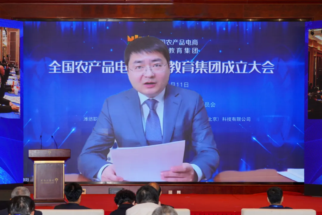 王积富讲话。他表示,全国农产品电商职业教育集团在潍坊成立,为“农产品+电商”深度融合发展带来了新的重大机遇。作为农产品流通和电子商务工作的职责部门,潍坊市商务局将联合有关部门单位,深化政学研交流,推进产供销合作,加快推进农产品电商高质量发展。市商务局将深入落实市委、市政府决策部署,全面实施全市跨境电商高质量发展行动方案,持续推进农商互联、产销对接,更好畅通农产品上行通道,进一步提升农产品国际市场占有份额,把更多优质农产品送到全国人民餐桌。深化与全国高职院校、电商企业的合作,加快打造人才培训基地、产品集采基地、产融示范基地、创业创新基地,进一步强化人才支撑、产业支撑、政策支撑,推动农产品电商实现更好更快新发展。