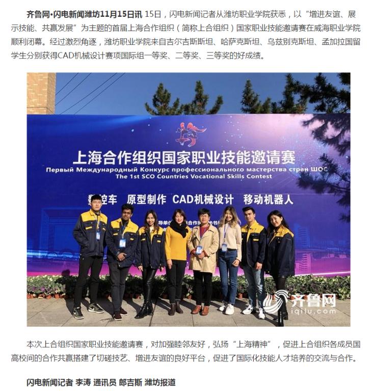 [齐鲁网]76net必赢官网留学生获上海合作组织国家职业技能大赛一等奖