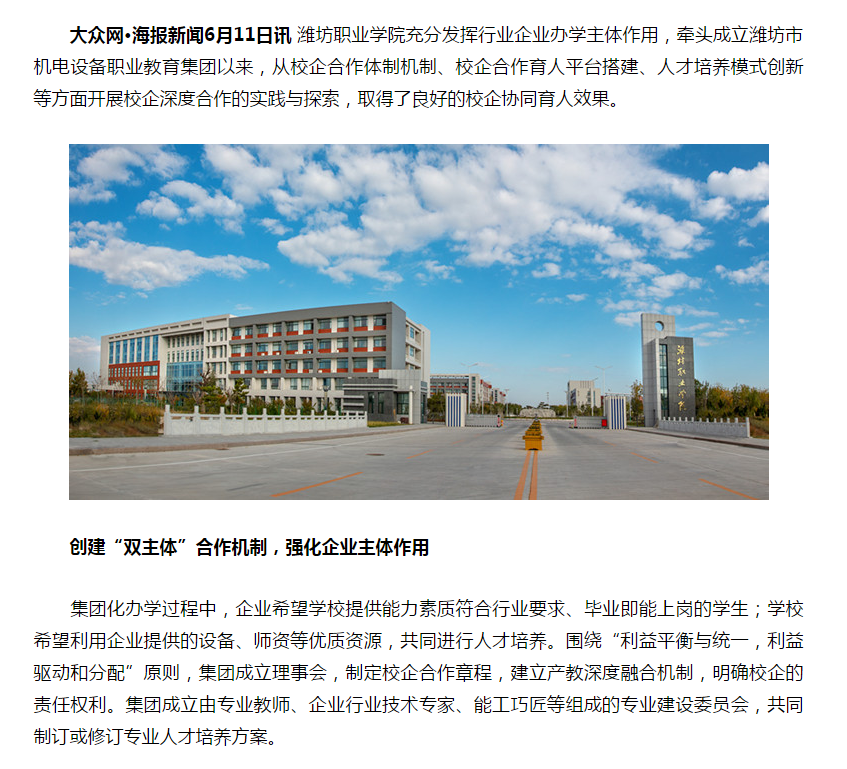 [大众网]76net必赢官网集团化办学 开展校企合作的深度实践