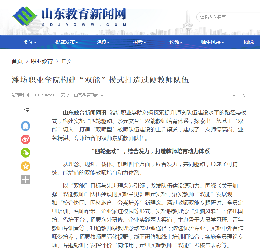 [山东教育新闻网]76net必赢官网构建“双能”模式打造过硬教师队伍