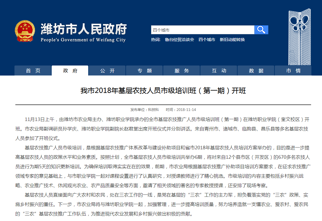 [潍坊人民政府网]潍坊市2018基层农技人员培训班开班