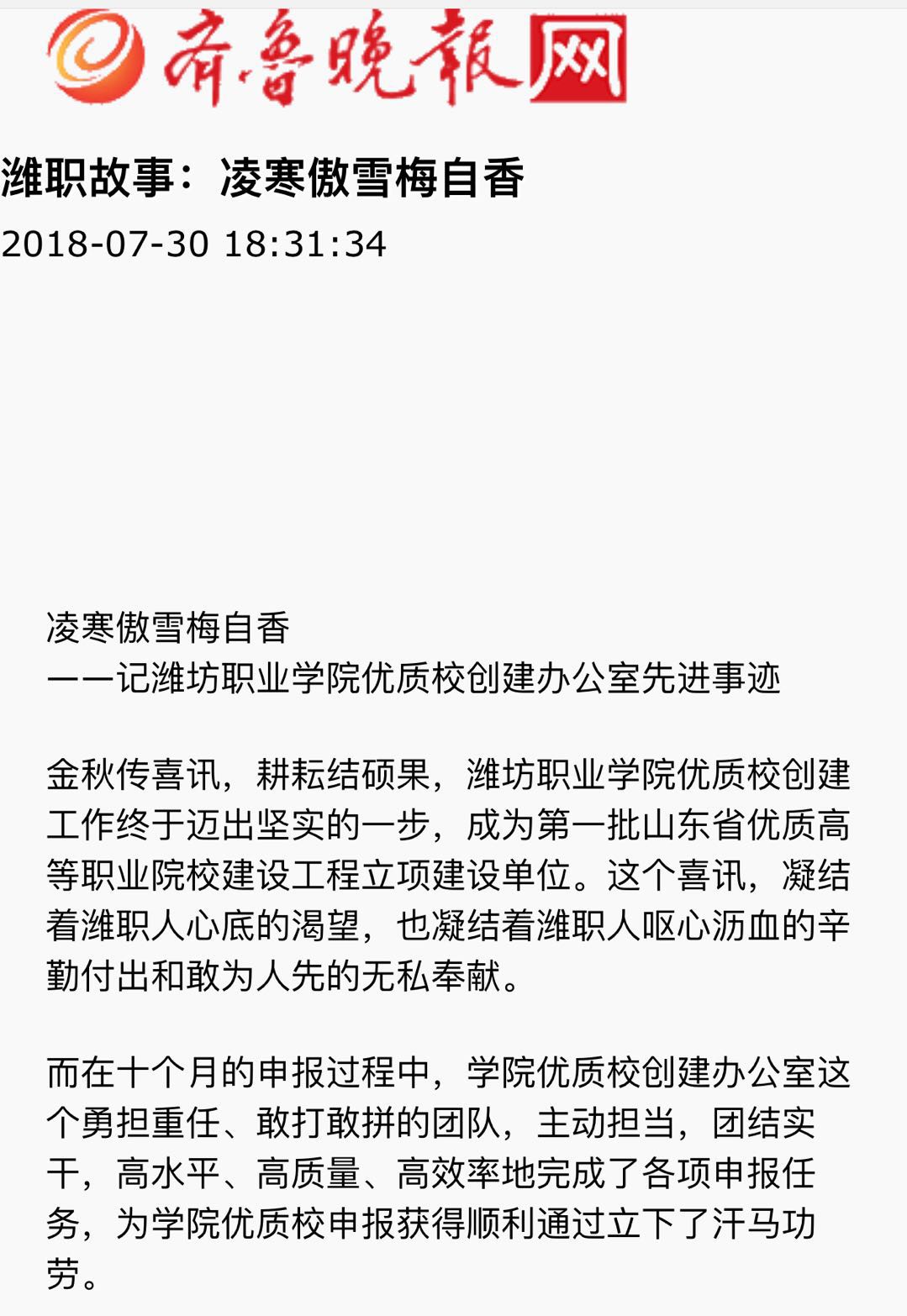 [齐鲁晚报]凌寒傲雪梅自香——记76net必赢官网优质校创建办公室先进事迹