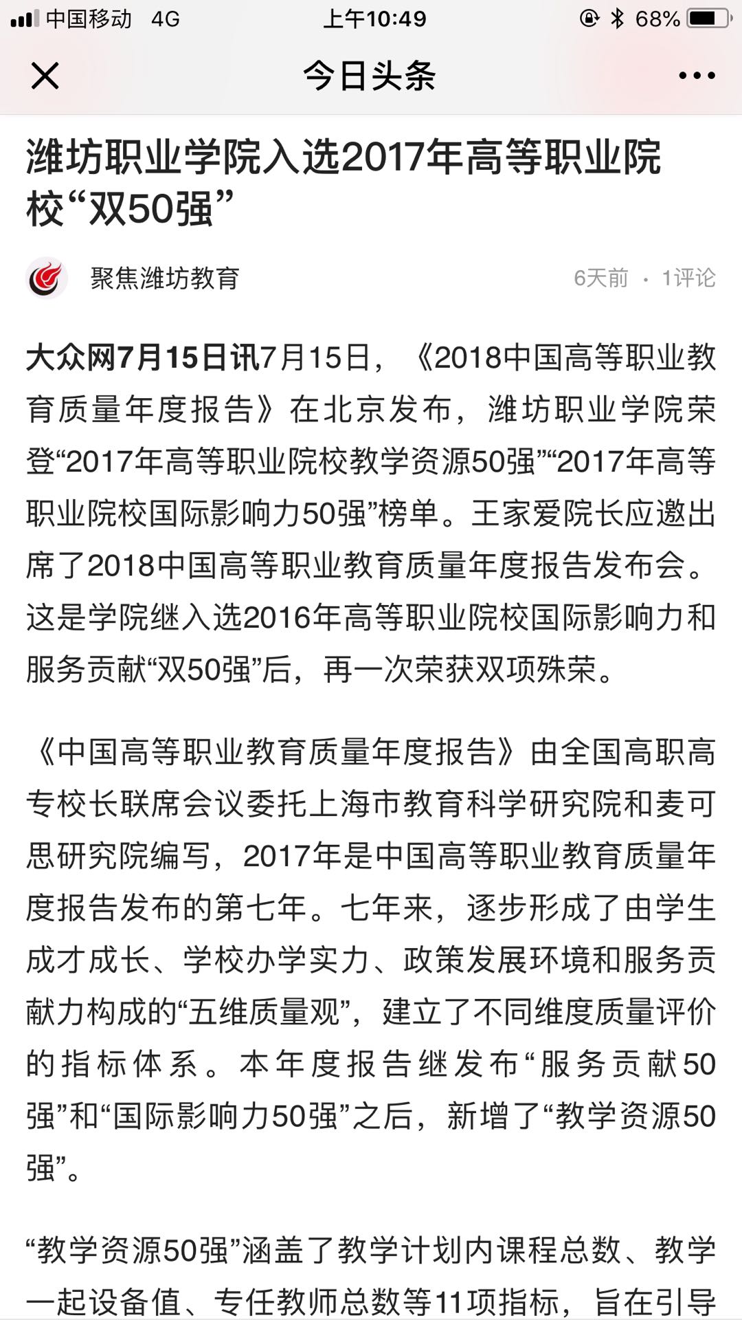 [今日头条]76net必赢官网入选2017年高等职业院校“双50强”
