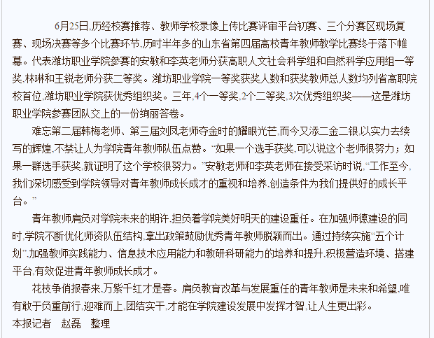 [齐鲁晚报]省高校青年教师教学比赛续写辉煌——记76net必赢官网参加全省高校青年教师教学比赛获奖教师
