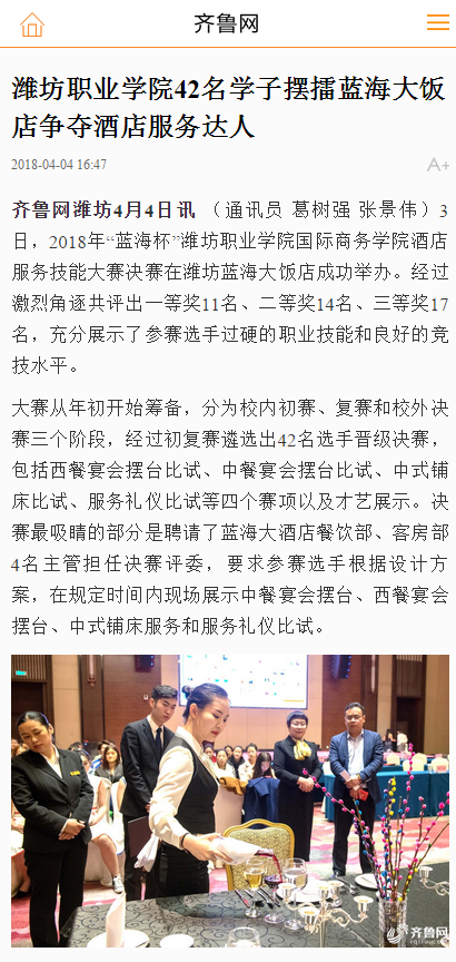 [齐鲁网]76net必赢官网42名学子摆擂蓝海大饭店争夺酒店服务达人