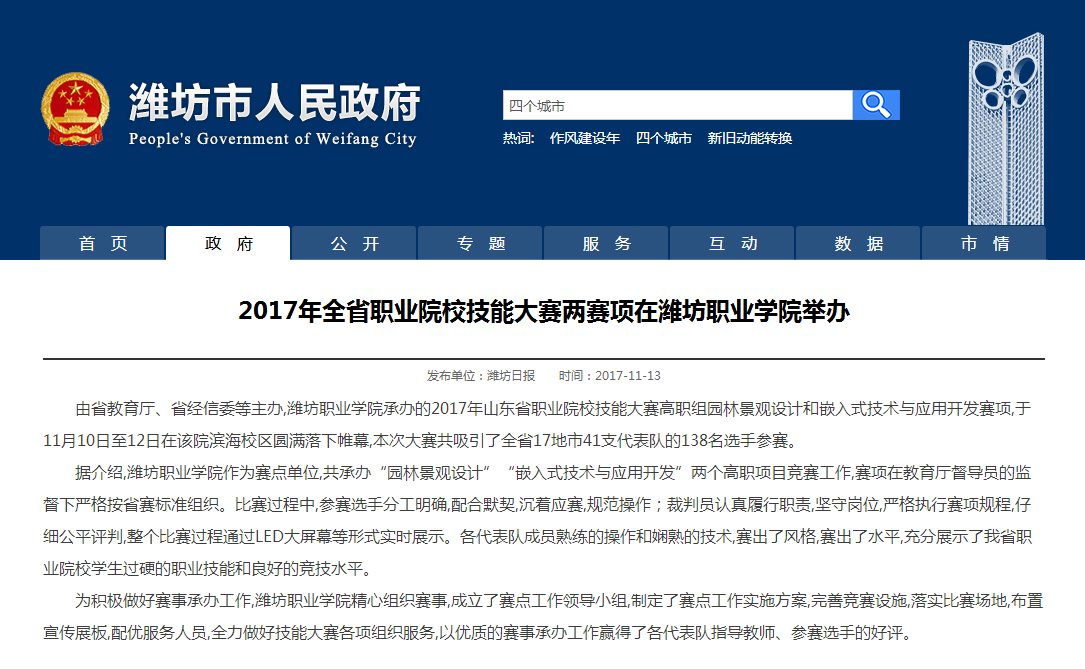 潍坊市人民政府网站: 2017年全省职业院校技能大赛两赛项在76net必赢官网举办