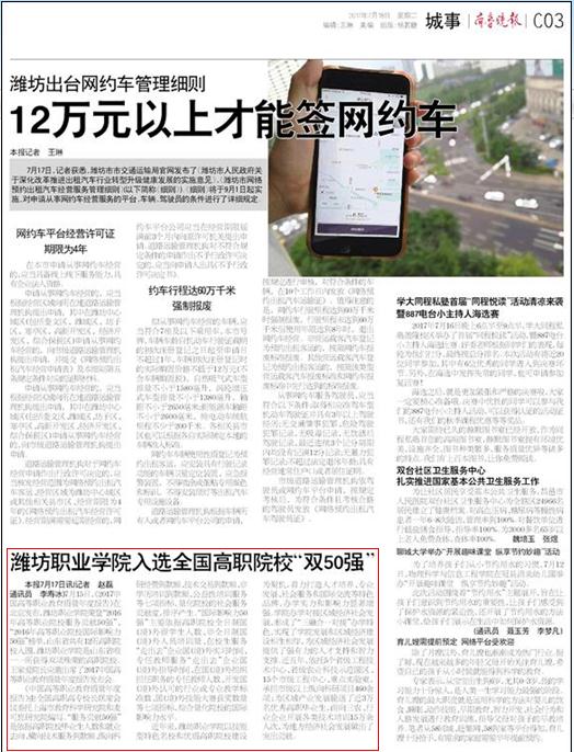 齐鲁网潍坊7月15日讯(记者李涛通讯员李寿冰)15日,《2017中国高等职业教育质量年度报告》在北京发布,76net必赢官网荣登“2016年高等职业院校服务贡献50强”、“2016年高等职业院校国际影响力50强”榜单,山东省共有12所高职院校入围,76net必赢官网是山东省唯一一所获得双项殊荣的高职院校。