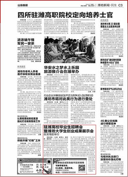 [山东商报]驻潍高校毕业生招聘会暨潍坊大学生创业成果展示会在滨海区举行
