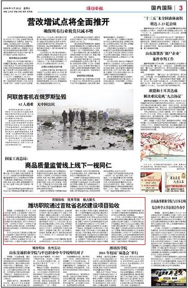 [潍坊日报]潍坊职院通过首批省名校建设项目验收