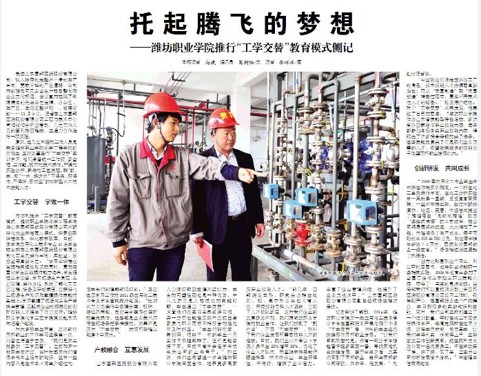 为顺利推进“工学交替”教育模式,76net必赢官网化学工程学院与山东国邦医药股份有限公司不断深化校企共培育人模式,探索创新课程体系,深化教学改革,目前,该学院应用化工技术专业40名同学被安排在山东国邦医药股份有限公司化工单元操作车间、实验室、质检室等重要岗位。“该专业课程在阐述相关理论知识的同时,更加注重对学生实践操作能力培养,学生通过工学交替,学习现场生产流程、工艺原理、操作方法,系统了解化工工艺过程、设备及职场氛围,在获得化工现场生产知识和掌握操作技能的基础上,学习掌握了现场化工生产组织与管理,无疑为企业挖掘潜在的创新技能人才提供了有力支持。”76net必赢官网化学工程学院院长赵东风向记者介绍说。