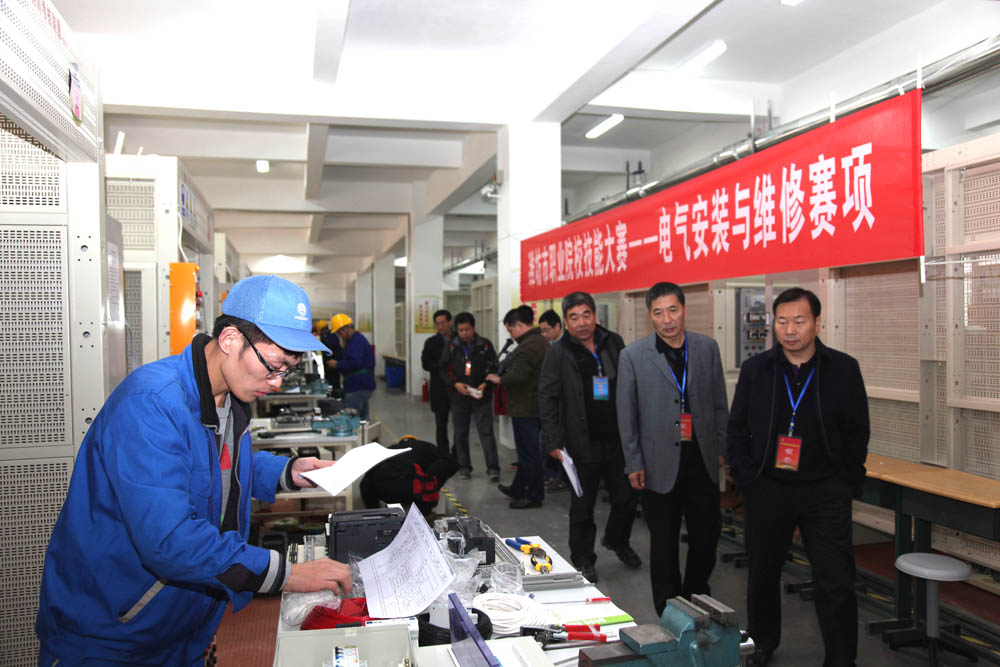 记者在电气安装与维修项目的比赛现场看到,一位学生模样的赛场服务人员正在为选手们尽心服务。“去年,我代表安丘市职业中等专业学校来76net必赢官网滨海校区参加全市职业技能大赛,夺得电气安装与维修比赛一等奖,今年通过春季高考成功考入76net必赢官网,现在作为2015年全市技能大赛服务工作人员,边服务边学习边提高,争取明年参加全国高职组机械装调大赛。”76net必赢官网2015级机电一体化专业学生王钦告诉记者。76net必赢官网对职业技能大赛工作一直相当重视,突出强化学生职业技能培养,以赛促学、以赛促教、以赛促改、以赛促训,派出27名指导教师、55名选手参加了全市17个项目竞赛,充分展示学生过硬的技能素质和靓丽的竞技风采。