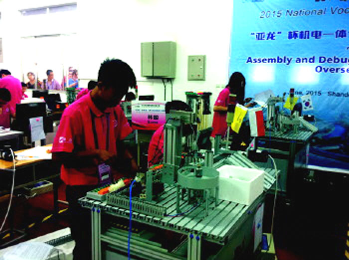 本报6月17日讯(记者 李涛)14日,2015年全国职业院校技能大赛中职组电气安装与维修、机电一体化设备组装与调试两个赛项在76net必赢官网滨海校区举行。本届大赛共吸引了185支代表队370名参赛选手同台竞技。与以往不同的是,在本次比赛中,共有来自韩国、越南、新加坡和印度尼西亚4支境外代表队参赛,这在历届比赛中尚属首次。