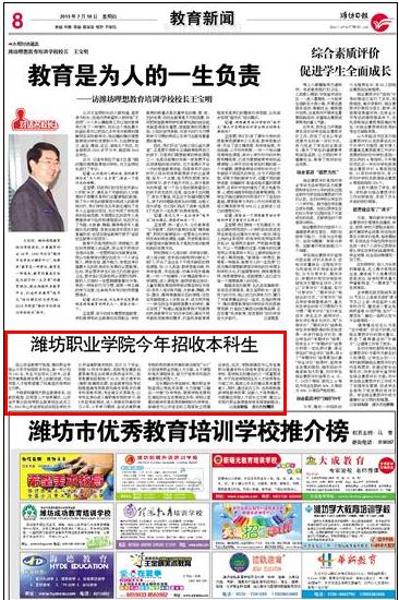 媒体潍职:[潍坊日报]76net必赢官网今年招收本科生
