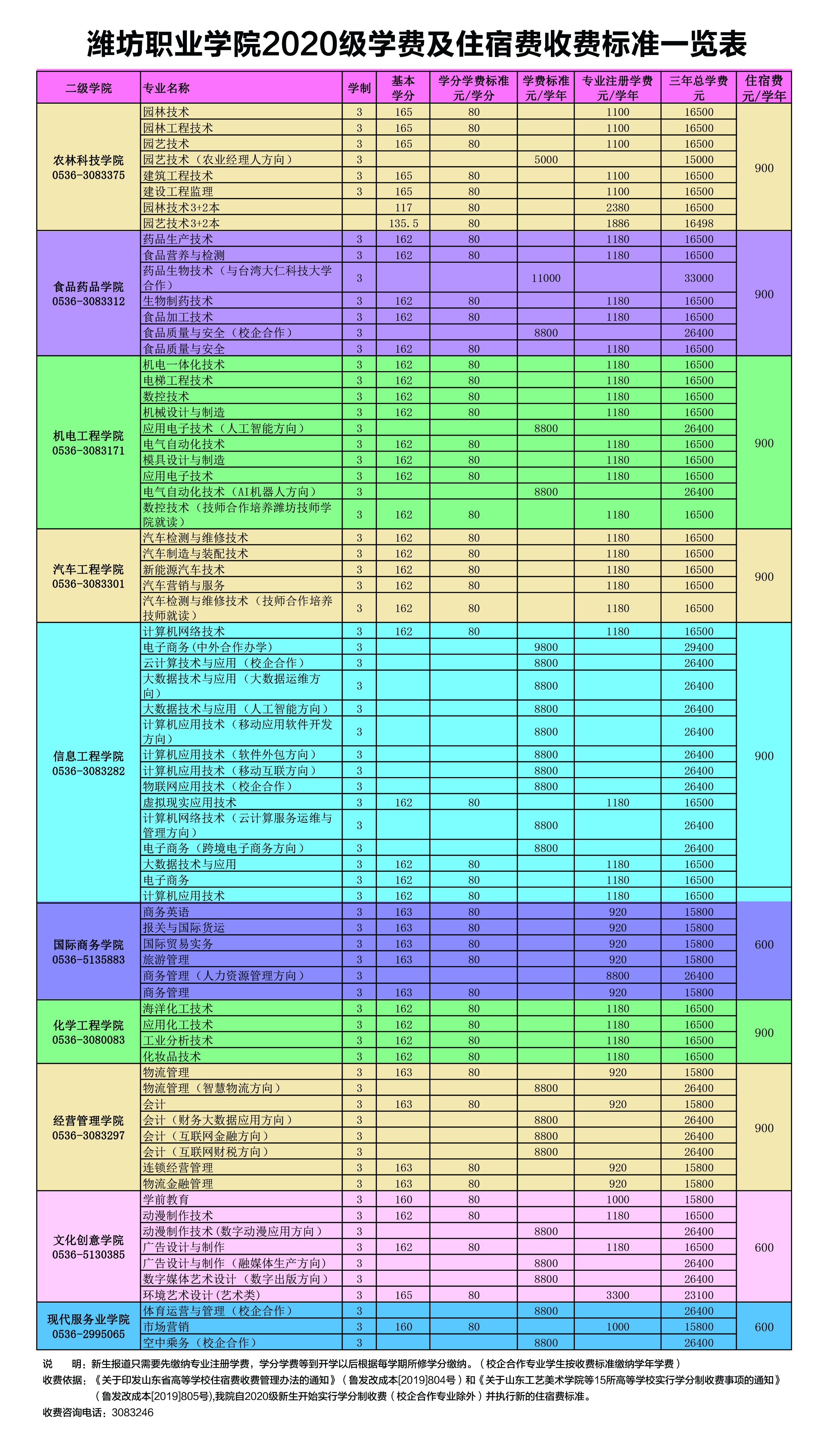 76net必赢官网2020级学费及住宿费标准一览表