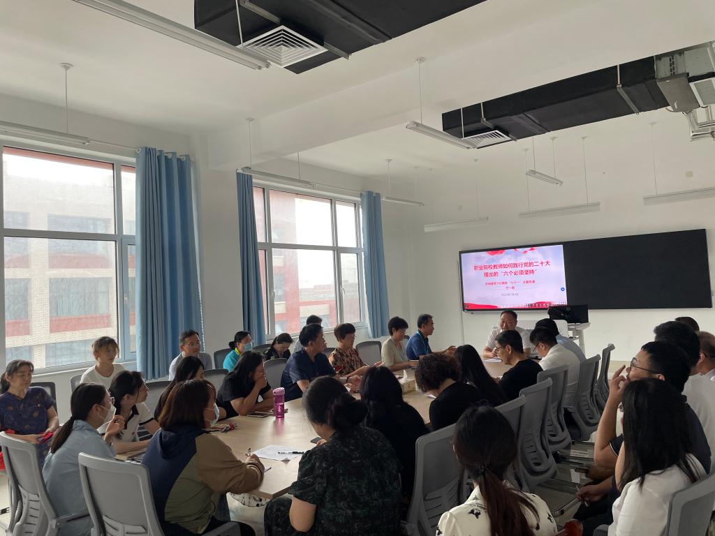 7月4日下午,学院党委委员、组织人事处处长付一明同志到经营管理学院党总支作《职业院校教师如何践行党的二十大提出的“六个必须坚持”》主题党课宣讲。