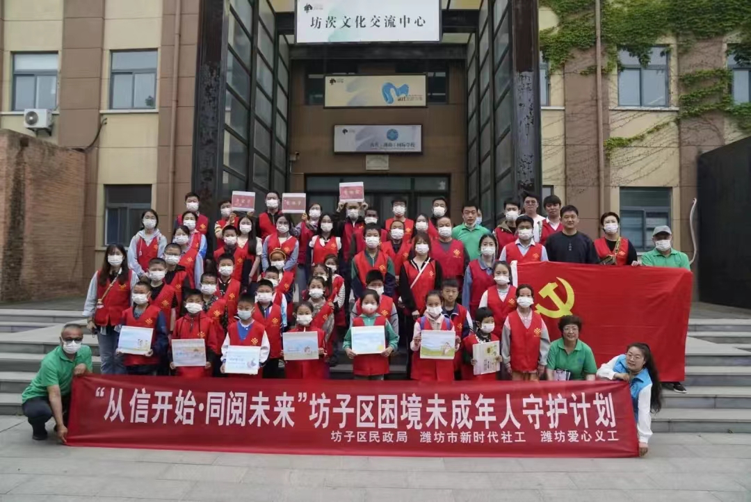 本次活动以坊子区50名困境学龄期儿童为主要服务对象,以“书”和“信”为沟通媒介,通过大学生志愿者变身“风筝姐姐”“风筝哥哥”参与其中,关注困境儿童中因家庭亲职缺位导致儿童倾诉渠道不畅,造成情感的支持系统和陪伴缺失的问题。志愿者与困境儿童结对一对一信使,大手牵小手同读一本书同写一封信,打开心灵之窗、唤醒文字记忆、体验阅读魅力。为困境儿童搭建与外界沟通的桥梁,协助构建情感支持系统,保障困境儿童的心理健康成长。
