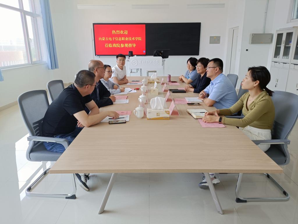 5月23日下午,内蒙古电子信息职业技术学院电子商务学院副院长陈杰一行4人来必赢考察交流,经营管理学院主要负责同志和相关科室负责人参加了交流活动。