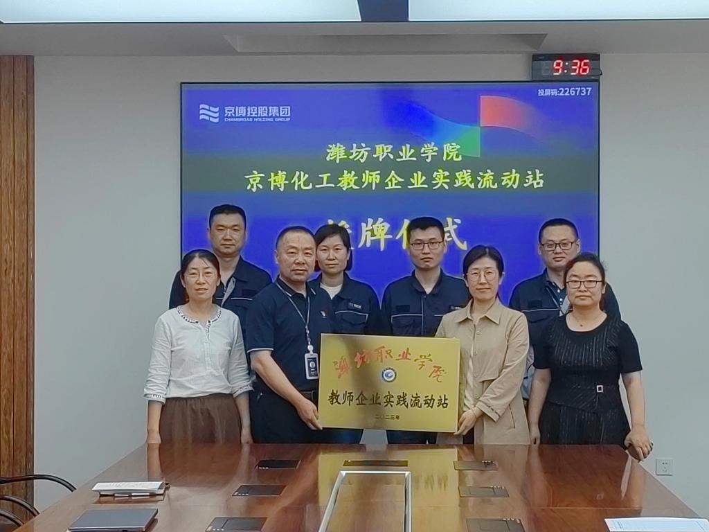 化工京博教师企业实践流动站的成立,标志着必赢校企共培师资进入新阶段,化学工程学院将以流动站建设为契机,结合专业发展,建立健全流动站运行机制,为教师实践技能水平提升、课程改革素材积累、参与车间技术改进等项目搭建平台。(杨艳玲供稿)
