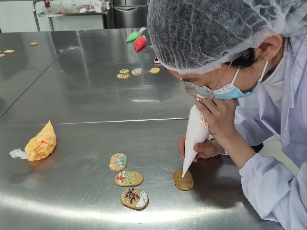 为了将魅力节气绘在美食上,将非遗文化留在记忆里。近日,食品药品学院美味坊加工社团在木泽楼食品加工实训室举办“传承节气文化·品绘舌尖艺术”饼干涂鸦主题活动,来自各二级学院的30名社团成员参加了此次活动。