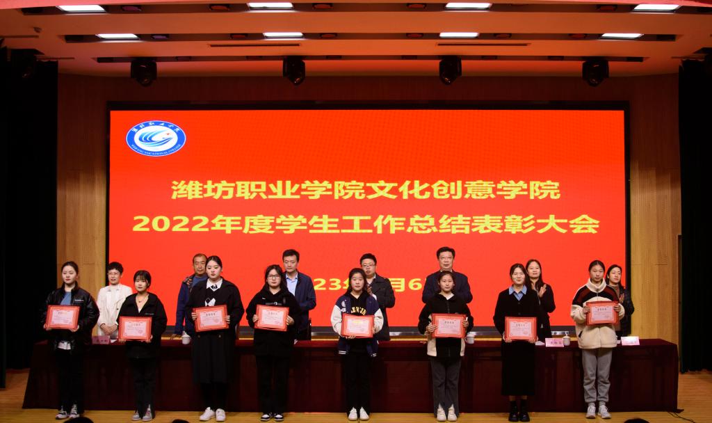 为总结学生工作,树立榜样标杆,凝练工作经验,助力一站式学生社区建设,4月6日,文化创意学院在奎文校区16号楼报告厅举办2022年度学生工作总结表彰大会,团委学生工作处、教务处、文化创意学院相关领导出席,全体班主任、辅导员、在校学生代表参加。